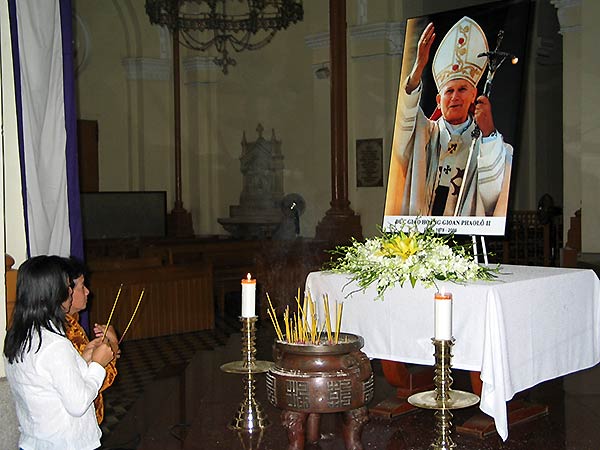 Saigon, beten für den verstorbenen Papst